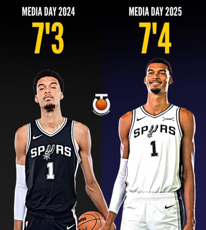维克托-文班亚马就更牛了,他去年新秀注册身高是7尺3,今年变为7尺4,也就是从2.21米长高到2.24米,21岁了还在长?